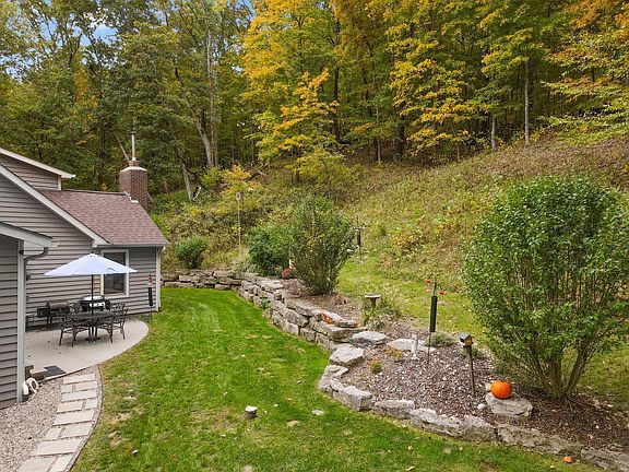 Nestled on a private 4-acre property,this 1.5-story home offers 3,000 sq ft of modern luxury & cozy comforts.The updated kitchen features custom cabinetry,quartz countertops,a kitchen island, & stainless steel appliances. Also off the kitchen is another gathering area with a "coffee/wine nook". Front door covered porch entry to Living room & seperate dining room.Convenient access from the 2-car garage leads to the main-floor laundry/mudroom.The family room, with a wood-burning fireplace, provides a cozy space to watch wildlife from your recliner. Upstairs, find 3 more bedrooms & a full bath. The lower level offers plenty storage, a "sleeping room," a rec area, a family room, & customizable space. Enjoy outdoor moments on the back door patio, around the fire pit, or on the front porch, observing wildlife on your acreage. Additional acreage is available next door, and a seller-paid rate buydown is an option.