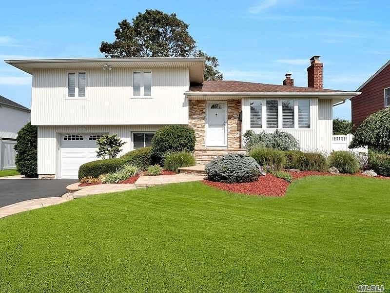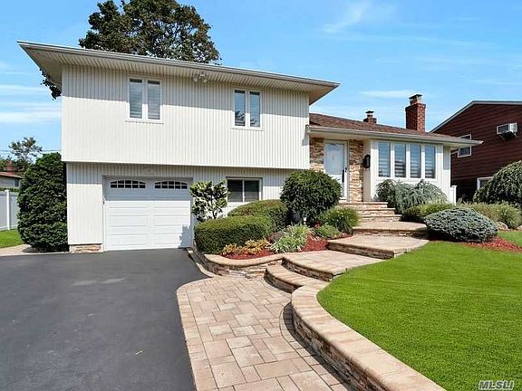 Diamond split in the heart of Plainview with amazing curb appeal- enhanced with a sleek stone & vinyl facade! Open concept kitchen with custom cabinets and granite countertops with an Anderson sliding door to decking. Mirage flooring, updated baths, wood burning fireplace in living room, cozy den, Crown moldings, Hunter Douglas shades, custom closets, new CAC, IGS and a finished basement!! This gem will not last! Low taxes of $13,271.99 with STAR.
