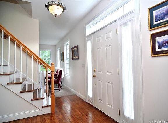 You'll be left speechless! This custom built 4 Bedroom home sits on a beautiful, expansive level 2 acre lot in a much sought-after cul de sac location. Step inside and you know you have found the one! Light and bright, neutral decor, beautiful wood floors, crown molding, and wainscoting catch your eye right away. The gorgeous Eat-in Kitchen offers granite counters, center island, beautiful cabinetry, a work station, and French doors to the deck. The Dining Room, Living Room, and Family Room with fireplace all contribute to a great flow for entertaining. Oversized windows, 9 foot ceilings, a Half Bath and separate Mud Room round out the offerings on this impressive main level. The upper level will wow you too! On one side of this floor the spacious Bonus Room presents so many possibilities--a media room, extended work space, study/library--you decide! On the opposite side, the generous sized Master Bedroom and Bath offers two walk-in closets, double sinks, a Jacuzzi tub, and separate shower. The Laundry Room, Full Bath, and 3 Bedrooms complete the center of this floor. Enjoy nature and its serenity? Then you will surely find the perfect spot to relax on the deck overlooking the pond. Your guests will also love the beautiful stone patio as they admire the beauty that surrounds them. Private, yet minutes to Granby center, this home offers it all! See it today and make it yours!