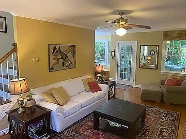 Best of both worlds exists in this move-in ready Woodcroft home. Something is always in bloom at 14 Striding Ridge Ct, convenient to RTP, Duke, & UNC. Relaxing on the screened porch is like being in a tree house. Listening to the owls at night or song birds over coffee, you may forget that 1-40, Streets at Southpoint mall, Sprouts & all the amenities are 5 minutes away. Stroll via the American tobacco trail to dine or shop at Sutton Station. Like to entertain? Your large, freshly stained deck will call to you. Southwest Elementary is just a short walk around the block. Home is near the end of a culdesac & features brand new roof (2025), factory painted genuine Hardieplank siding, new water heater, refinished hardwood floors, fresh paint & more. This unicorn won't last!