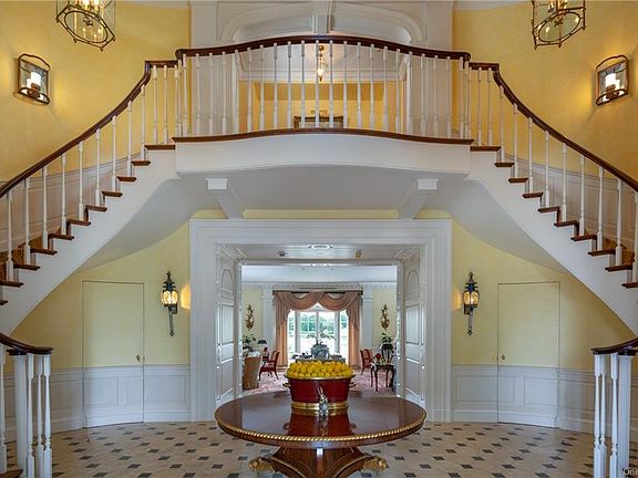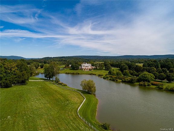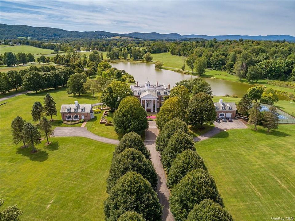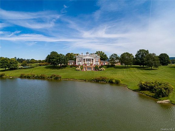 SUGAR MAPLE FARM. Privately situated in the midst of 466 ac, this 18,000 sq.ft. Georgian style manor house set on a rise overlooks a large spring-fed lake. Entry courtyard graced on either side by colonnaded porticos. The main entrance hall to the 3-story house, with its high domed ceiling, is complemented by an instant view of the lake. Large rooms, high ceilings and rich millwork. Fireplaces in the living room, dining room, chestnut paneled library and sitting room add to the atmosphere. Double curved staircases link the ground floor to the second story as well as a passenger elevator from the lower level to the top floor. Back staircase for staff accessed from fully appointed kitchen wing. Luxurious MBR suite with large bedroom and sitting room both with fireplaces, dual baths and lake views. 3 additional bedroom suites on the second and third floors plus another guest suite on the ground floor. The very lower level of the house is geared to recreation with swimming pool, sitting areas, kitchen, 2 baths, changing rooms, sauna, billiard room, gym, wet bar, wine cellar and a half basketball court. Outside terrace for entertaining. Tennis court and par-3 putting green. A Victorian era gatehouse at the main entrance has 4 staff apartments on the upper level and a spacious farm office on the ground floor. Other buildings include a 3 BR staff building, 2 manager s houses and several barns all connected by a paved interior roadway. Just 1 hours north of New York City.