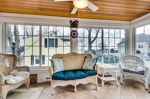 NEW PRICE! The gardens are blooming on this charming 3 bedroom, 2.5 bath home is on one of the most desirable streets in Squantum. Enjoy water views from the inviting front porch or 3 season sunroom. The first floor living space boasts a fireplace living room with beamed ceiling. Tray ceiling detail in dining room with corner cabinet. Hardwood floors throughout. Updated kitchen and baths, 2 year old gas forced hot air heating system. Gas hot water tank is also 2 years old. The finished lower level has a family room with gas fireplace, full bath and bonus room. Lovely perennial gardens and TWO DRIVEWAYS (one for your boat?). Deeded beach rights to private beach area. Watch the sun come up over the bay and enjoy this serene space all year long!