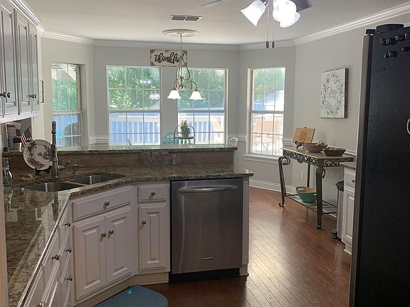 IMMACULATE home on quiet culdesac and backs up to woods! Everything in this home is updated and looks fabulous! LVP flooring, new fresh paint, master bath remodeled with quartz counters & huge walk in shower! Kitchen has granite counters, stainless appliances & lots of cabinetry. Raised dining area with high ceilings. Covered deck & extended deck area overlooking park like back yard! New roof 2016, new HVAC 3 yrs ago, 2 outside sheds, & immaculate yard! Even storage shelving in the garage. See agent notes.