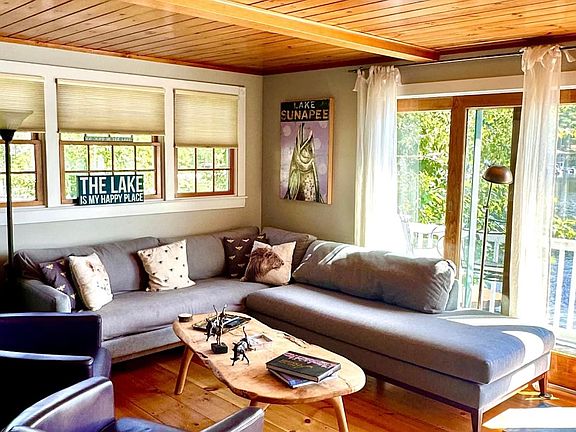 Welcome to Almost Heaven, where the breathtaking views of Lake Sunapee will leave you in awe. As soon as you step inside, you'll be captivated by the home's southern-facing position, which invites abundant sunlight throughout the day and offers expansive views of New Hampshire's second biggest lake. The master bedroom at Almost Heaven is a true gem, with full windows facing south, allowing you to bask in the morning glow upon awakening or admire a setting sun in the evening. The decks at Almost Heaven are the perfect spot for relaxation, where you can unwind with a good book or enjoy an evening cocktail while taking in the stunning views. This home has been tastefully updated, making it an ideal retreat for couples looking for a getaway or for those who want to enjoy the Lake Sunapee region for an extended period of time. This home is available for a season rental, month long, or weekly rental. This home rents starting at $5,500.00/ week in the summer. All stays long and sort, are at the discretion of the homeowner. Meals and room ID 102033. Guests do not have access to the pontoon boat pictured. That boat if OFF LIMITS to all guests.