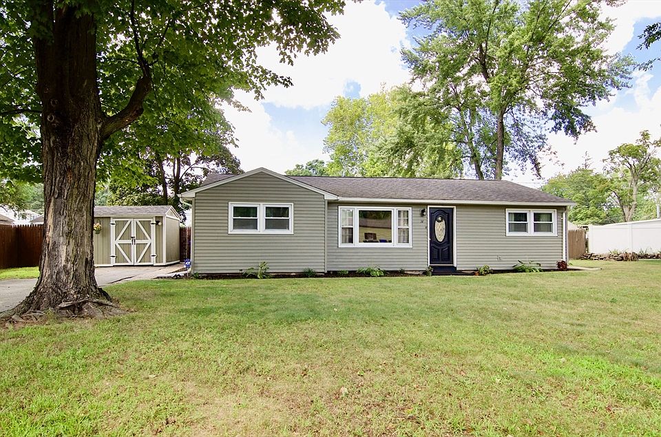Welcome to this expanded ranch in a quiet East Forest Park neighborhood! Offering over 1,500 sq ft of living space, this 3-bedroom, 1.5-bath home features an open floor plan and thoughtful updates. The spacious living room flows into a dining area and kitchen with a center island, perfect for entertaining. The primary bedroom includes a convenient half bath, while two additional bedrooms share a full bath with tub and shower. New carpet adds comfort to the bedrooms, and first-floor laundry makes everyday living easy. A large family/rec room with pellet stove, sliding doors to the backyard, and extra storage is a standout feature. Enjoy a private fenced-in yard—ideal for gatherings, pets, or gardening. Recent improvements include a new boiler and hot water tank (2024), ensuring efficient comfort. With a paved driveway, natural gas heat, and low-maintenance slab foundation, this home is move-in ready. Close to schools, shopping, and major routes. Highest & best by Thusday @12
