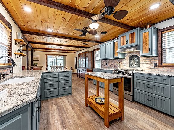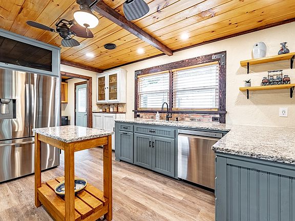 • Features: Ceiling Fan(s), Beamed Ceilings, Closet/Cabinets - Custom Built, Flooring - Vinyl, Countertops - Stone/Granite/Solid, Breakfast Bar / Nook, Open Floorplan, Recessed Lighting, Remodeled, Stainless Steel Appliances