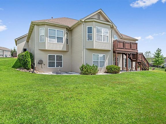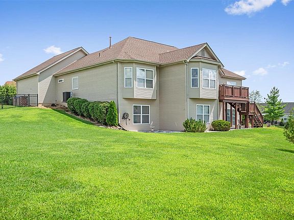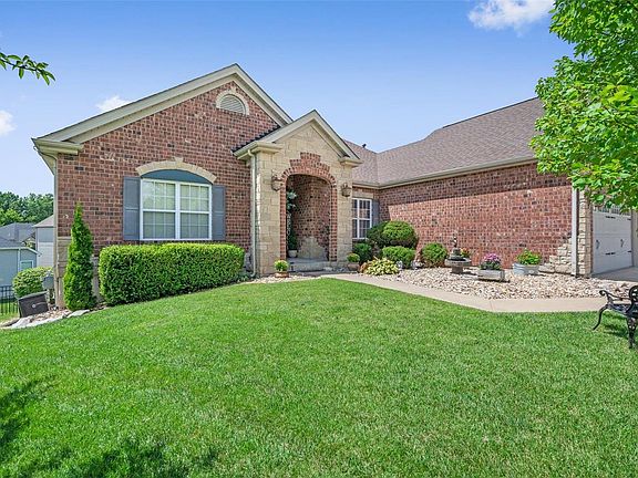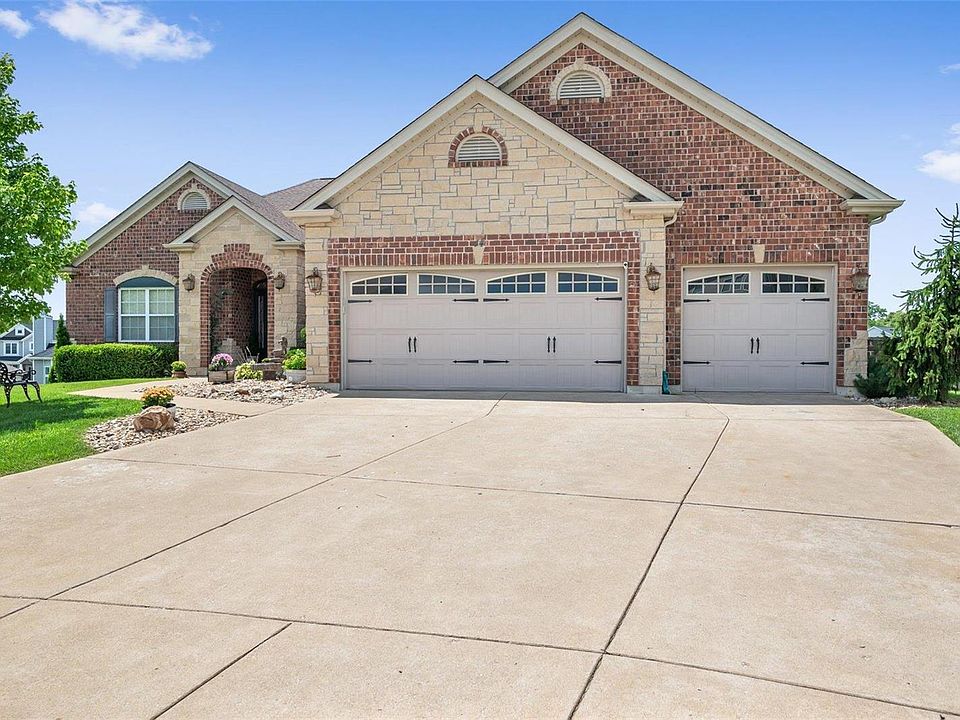 Beautiful custom ranch home with brick/stone elevation in a quiet cul-de-sac that has all the extras you could want in a new home! You will be greeted with newly installed strand woven bamboo flooring, elegant archways, custom moldings and millwork. The great room features soaring cathedral ceilings w/stone gas fireplace. Owners suite is a dream with trey ceiling, bay window, huge WIC, double sinks & jet tub w/ separate shower. Jack & Jill bath connects 2 additional nice sized bedrooms with this split bdrm plan. Spacious kitchen w/custom cabinets, stone bkfst bar, bkfst room & separate formal dining area. New sink, faucet & all new black stainless steel appliances to stay. Walkout LL features rec room, separate sleeping area, full bath, gym area & french doors leading to your office or 4th bedroom & still leaving room for storage. Large deck & patio for entertaining, 3 car garage & irrigation system. Roof is 2 months new! Subdivision pool, basketball court & playground. Welcome home!