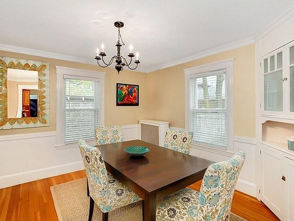 Absolutely charming Cape Cod style home in coveted West Medford 5 miles from Boston! A prime location close to Tufts University & Middlesex Fells. This residence has an open airy feeling throughout the 3 finished levels of living & has sunlight streaming in from every direction. You are welcomed into a functional entry way that flows seamlessly thru the dining room/ living room to a well proportioned eat in kitchen & first floor bedroom. 2 bedrooms with cathedral, beamed ceilings & ample closet space await you on the top floor. The finished lower level offers exceptional flex space perfect for home gym, office, family room or guest/teen suite. Amenities include gas heating & cooking, central air, hardwood floors & storage. The large (super private) rear yard round out this superb home with a stone patio & storage shed. A special home in a friendly, welcoming neighborhood steps from the commuter rail, express bus to Boston, Playstead Park, popular restaurants & shops.