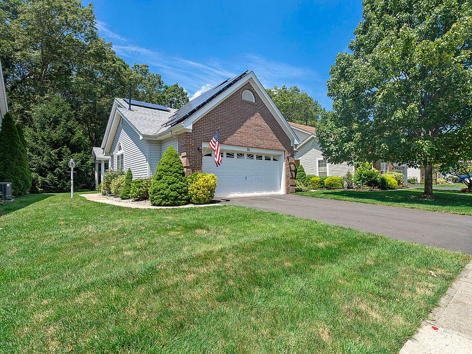 Spacious two bedroom two bath single family home in 55+ Adult Community at the Jersey Shore!! This impeccably maintained open floor plan model will not last long. Home features newer hot water heater, and hvac system, large washer dryer utility room/pantry, heated sun room, outdoor patio backing up to wood, 2 car garage, and solar panels! Close to major highways and the beach, don't miss this opportunity!