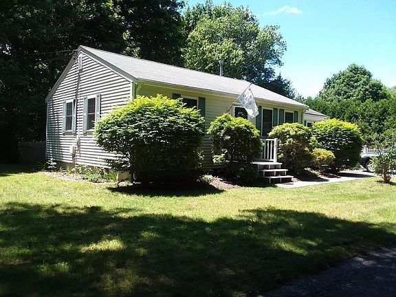 A serene, park like setting surrounds for this one level, charming house.The floor plan opens up from the kitchen to the living/rm. A generous sized eat-in kitchen has new stainless steel appliances. Bathroom has new fixtures,floors and cabinetry. The bright bonus room has new "wood look" Pergo flooring. Bonus rm could be a dining room, family room or den that opens to a generous wood deck through french doors. Hardwood flooring throughout the living room and bedrooms. A full size, fully floored attic with pull down stairs adds extra storage. The wonderfully private back yard has a fenced in area. The adorable shed matches the house. It is a good size for extra storage and has window boxes and shutters. Set on a side street, .05 miles from Sunrise Beach, close to stores, restaurants and Daniel Webster School. Relax and enjoy the afternoon on the wrap around deck that overlooks a level yard abutting conservation land. Under 6 mi. to Exit 12. Be in your new home this summer!