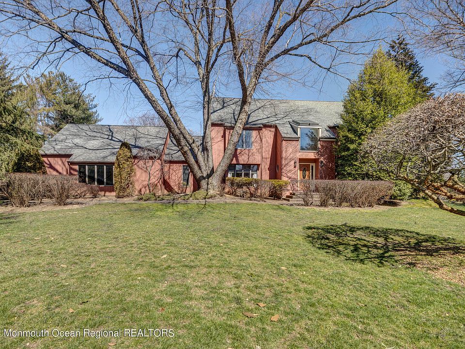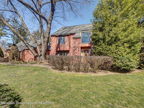 the backyard, perfect for entertaining and a screened-in dining porch that offers a wonderful way to relax at the end of the day. A second newer addition includes a private bedroom suite for family or guests with a second garage to be sure all the family cars are protected. Top notch Holmdel schools. A commuters dream that is readily accessible to all transportation and shopping.
