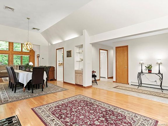 Introducing a beautifully maintained and updated contemporary ranch style nicely positioned in this quiet, convenient Trumbull neighborhood. An easy walk or bike ride to town managed Twin Brooks Park, (82 acres) with playground, fields, walk/bike paths, fishing pond and popular Beach Memorial Park, (331 acres) of nature trails, outdoor pool and splash park both of which highlight the recreational opportunities of this location. Inside, the open floor plan with gleaming hardwood floors, vaulted and cathedral ceilings, skylights and generous window placement add interest and allow natural light with views of level rear lawn spaces and protected forest landscape. The kitchen has been professionally upgraded with quartz countertops, tiled floor and backsplash, new white painted maple cabinetry plus a walk in pantry! A spacious master bedroom is en-suite with walk-in closet, two additional bedrooms are also generous in size. The added bonus is the finished lower level (on efficient separate heat zone) for play/rec or home office space! Please see addendum for additional property and household details. Please see the MLS reports for additional property information, seller's disclosures and utility use averages...please note that the main driveway photo has been virtually enhanced, it will be professionally repaired and sealed by Wed 6/3...
