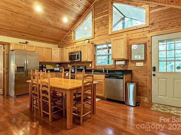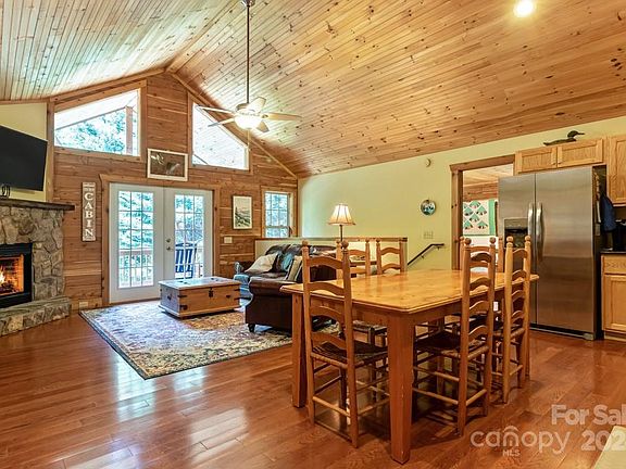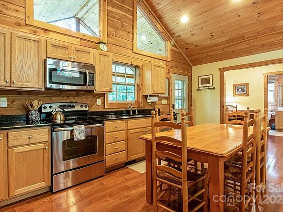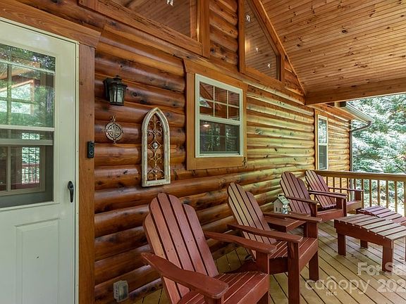 Discover the ideal mountain log home with hardwood floors, an open floor plan, stainless steel appliances, solid surface counters, vaulted ceilings, & a stone fireplace. Perfect as a mountain retreat or permanent residence, this meticulously maintained home is 600 feet from pristine 28-acre lake Sheila. The vaulted open floor plan connects to outdoor spaces on both sides. The great room's stone gas fireplace adds warmth and character. With three en suite bedrooms, including a private basement suite with a separate entrance, this home is ideal for family getaways and guests. The kitchen includes modern stainless steel appliances and solid surface countertops. The landscape features fruit trees and an easy-care lawn. Can be sold "turn key" with all furnishings so U can enjoy, right away. A short walk to lake access, & your boat storage, for the BEST swimming, fishing, and non-motorized boating WNC offers. Don’t miss this chance to own a luxury log cabin in the mountains at Lake Sheila.