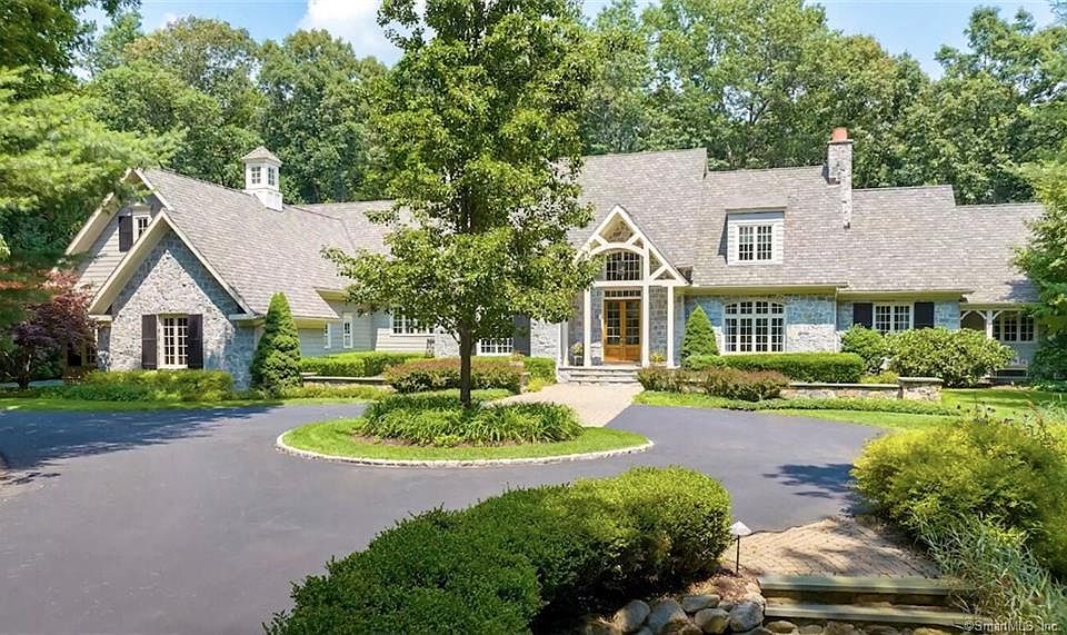 Welcome to 14 Thatcher Terrace. This exceptional property in Devonwood has high end masonry, sophisticated architectural details, resides on 1.4 acres of professionally landscaped grounds, and abuts open space. A circular driveway and pond with water features set the stage for a gracious home with space for family, friends, entertaining and more. The main level has lovely sight lines with open foyer, formal coffered living room, dining room with fireplace, wet bar and wine fridge. The gourmet kitchen has been recently updated with new high end appliances including ice maker, range, ovens, and double dishwashers. it offers both informal dining space and a flex space for sitting room or additional seating. A family room with two story fireplace is open to the kitchen and all rooms open to patio and back garden with French doors. The main floor is completed by a primary bedroom suite with sitting room/office with fireplace, walk in closets, and primary bathroom. French doors from the bedroom lead into back patio with fenced in yard with woods beyond. The upper level offers three en-suite bedrooms that share a lounge area with wet bar. The lower level walkout basement includes a media room with fireplace, climate controlled wine cellar and tasting room, an additional fifth bedroom with full bath and an extra room for exercise or office. Main and lower level have access to four car garage. Convenient to I 84, WH center, UConn, and 2 hours from Boston and NYC.