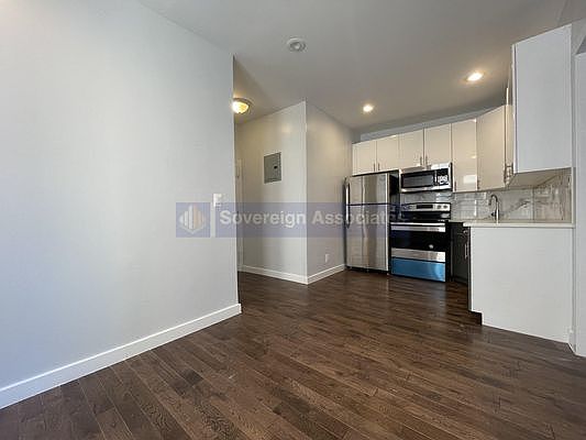 Inwood/ Thayer St-- Nicely done, recently renovated open-plan 2 bedroom apartment. Both bedrooms have closets. Living room and exposed brick accents which create a distinctive look. Granite kitchen with stainless steel appliances and microwave. Electric stove. Plenty of cabinet space. White-tiled bathroom with a full shower. Easy access walk up building with this 2 bedroom on the 5th floor. On-site attentive Super and great management company. The building is located near the A or 1-trains, Broadway buses, Fort Tryon Park, Supermarkets and restaurants for every taste.