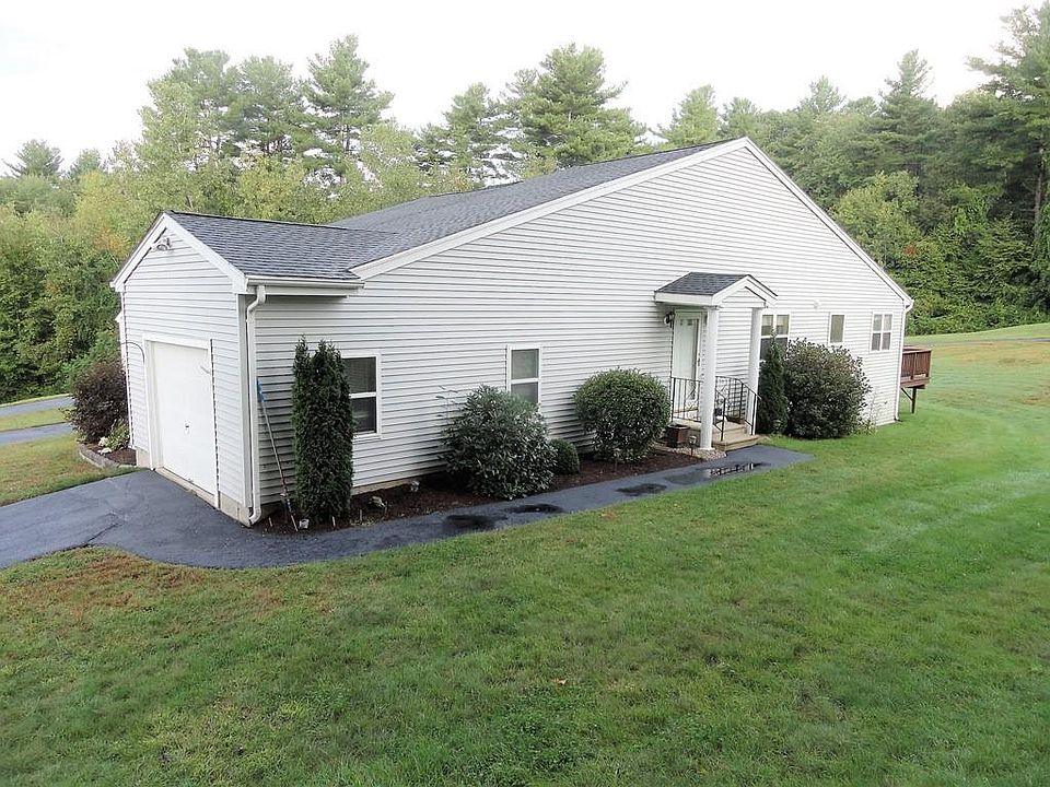 NEW PRICE! Spacious end-unit 2BR Ranch condominium with soaring ceilings and Central Air. Living Room with area for formal Dining, fully-applianced Kitchen with ample cabinet storage, peninsula for casual dining and eating area with sliders to rear deck. Master Bedroom with Full Bath located off Living Room and second Bedroom and Full Bath for guests with convenient first floor laundry. BONUS area in the lower level ideal for future expansion. Attached 1-car garage with opener you're sure to fall in love with this home set in established complex. Welcome Home!