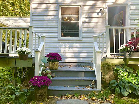 This beautiful property is perfectly situated just 5 minutes from the covered bridge and 15 minutes from downtown Brattleboro, and just over 30 minutes to Stratton and Mount Snow. Located on a private dead-end road, this is the quintessential Vermont home offering seclusion, an outdoor shower with hot and cold water, a soapstone sink, established garden beds, a chicken coop with electricity, woodshed, crafting shed, Vermont slate patio, and stone stairs built by the renowned Dan Snow. This is an artist's dream. Nestled in the woods, you can hear the babbling Falls Brook (which is located just across the road) from your bedroom window. There is ample storage for all of your outdoor gear and supplies. If you seek a peaceful, serene setting to be enveloped in the splendor of Vermont's wildlife and nature, and inspire your creativity, your search ends here.
