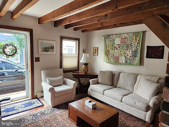 Welcome to this Circa 1850’s Town Home on a lovely street with a community feel. This home has a traditional floor plan and is in move-in condition. This home is located on one of the most sought-after streets in the City. One thing you will not easily see is the home has the ability to have a rear gate to a private for-fee parking lot. The current owner upgraded all the widows to Anderson so enjoy the quiet and comfort they bring. The outside siding was replaced and the roof was redone all within the past 18 years. The living room has a real wood-beamed ceiling and a wall with the back of what may have been a fireplace in the dining room. The Dining Room is classic and the home features a large eat-in kitchen with plenty of cabinetry. Going upstairs there are two stairs going front and rear. The two bedrooms are quite comfortable in size and there is a walk-in cedar closet in the hallway. There is a walk-up attic with a pull downstairs for storage and it has a floor and some headroom. The backyard is quite special and is quite nicely landscaped featuring a large shed, a patio, and a very rare Franklina Tree which attracts hummingbirds and is extinct in the wild. Just a short 2-minute walk to either Hill Top Park where you can enjoy an elevated view of the river or walk down to the Delaware River Heritage Trail or for youthful entertainment walk to Second Street Park for swings and other entertainment. Enjoy either of these parks as an extension of your backyard for walking the dog, throwing the ball around, or just enjoying serene views.