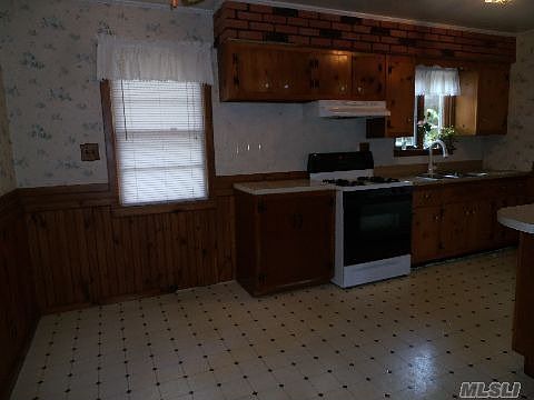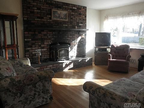 Spacious 4 Bdrm, 2 Bath Cape With Attached Garage And Full Basement With Inside & Outside Entrances. Living Room W/Fireplace Set Up With Heater Insert And Wood Floor. Clean And Ready To Move In. Possible Accessory Apt With Proper Permits. Bay Shore Schools.