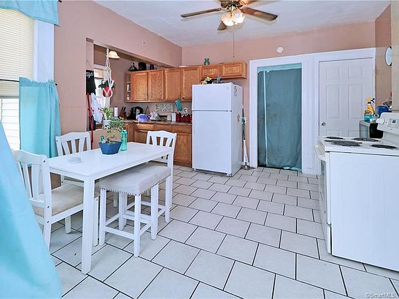 Large duplex style 2 family with 3 bedrooms, kitchen, dining and living rooms and 1 bath per side. There are some hardwood floors and thermopane windows. Each unit has a walk up attic with #14 side being finished for extra living space. Good income producing producing property or live on one side and have the tenants help with the mortgage