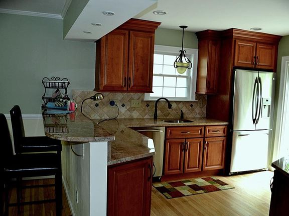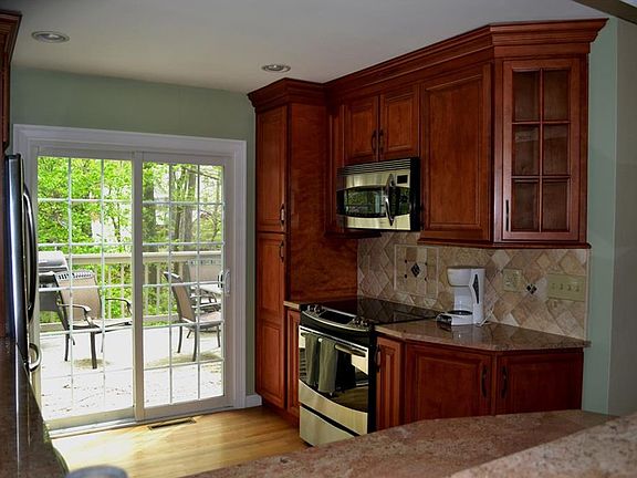 Spacious and nicely updated 3 bedroom/2 full bath cape convenient to shopping, restaurants, and transportation. Fabulous newly remodeled kitchen with breakfast bar, granite countertops, stainless steel appliances all open to large dining area and sliders to deck overlooking .27 acre for enjoyable entertaining. Addiitional improvements include remodeled first floor bath, hardwood floors on 1st floor, roof 5 years old, and exterior painted. Second floor includes master bedroom, remodeled full bath, and 2 additional bedrooms with vaulted ceilings. Additional storage in lower level and 1 car garage.
