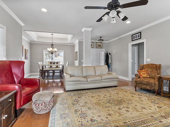 If you have been waiting to find the perfect home in Elmore County in the Redland School District, run, don't walk to see this beautiful 3 bedroom, 2 bath brick home. The location is perfect, close to Wetumpka, Montgomery and Gunter Air Force Station. This home is located in a quiet cul de sac with only 7 other homes. When you enter the home you notice the open concept and wood flooring throughout the home. In the family room there is a fireplace with gas logs to enjoy on those cold nights. To the right of the family room is the dining room with a tray ceiling and a large window to make the room light and airy feeling. From the family room you enter the kitchen with a breakfast area, tiled flooring with a pantry, plenty of counter space and cabinets. Outside of the kitchen is the hallway that leads to a large laundry room with cabinets for storage and the door that leads out to the double car garage. This home has a split floorplan. There are two roomy bedrooms on one side of the home with large closets, carpeted with windows for plenty of light. The bathroom between these two rooms has a tiled tub/shower combo. The master bedroom/bath is on the other side of the home. The large master bedroom has a tray ceiling, is carpeted with a door that leads out onto the patio. There is a large walk in closet in the master bath where you have a whirlpool tub and a separate tiled shower. Outside is a oversized patio with a gas hookup for a gas grill for entertaining family and friends. The large backyard has a privacy fence and plenty of room for children to play and have their recreational toys or a fire pit with chairs around it for the adults to gather. Make your appointment today to see this lovely home.