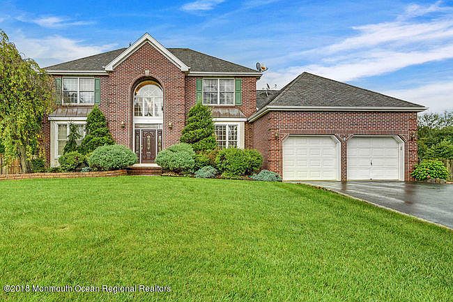 Custom built 5 bedroom 4 full bath colonial in Freehold Twp's Chatham Ridge development with 2 car garage. This home features 2 story foyer, formal living room with custom hardwood floors and trey ceilings, formal dining room has decorative molding, and family room with wood burning fireplace and sliders to oversized deck. Eat in Kitchen has 42 inch cabinets, new double oven, center island, and granite countertops. First floor bedroom and full bath perfect for in-law suite. Master bedroom with walk in closet and full bath with double sink, soaking tub, and stall shower. Finished basement has large area perfect for entertaining, bar, bathroom, and private entrance. Great location close to schools, shopping, restaurants, and NYC transportation.