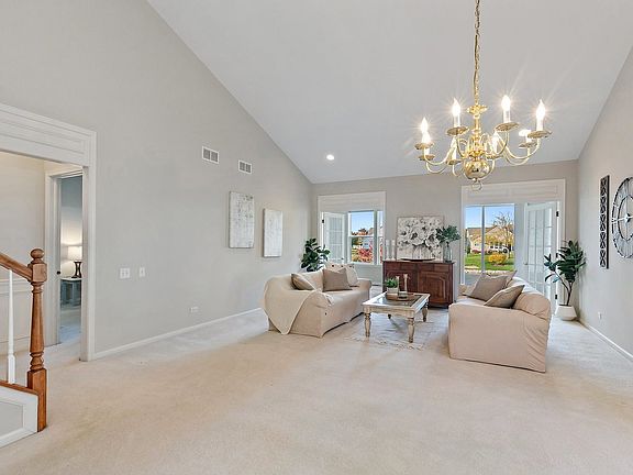 Enjoy tranquil waterfront views that span the entire back side of this move-in ready, super spacious duplex. This Original Owner, maintenance-free home offers a FIRST FLOOR Primary Suite and is nestled on a quiet cul-de-sac on a premium water view homesite in sought after Manchester Lakes. Step through french doors just off of the open concept living/dining area to a sun drenched, heated four season room that boasts amazing water views no matter the season. The vaulted main living area offers generous open space and feels so bright and airy. The white cabinets and solid surface counters are abundant in this super cute kitchen. It also has a generous island, large pantry closet and eat in area with window surround, that make this an ideal space for gathering and entertaining. The primary suite is also vaulted and has great views. Enjoy a spacious ensuite bath with soaking tub, walkin shower, dual vanity, a water closet and large walk in closet. The laundry is it's own room just off the garage and features a large closet and storage cabinets. The upper level hosts a 2nd bedroom w/ walk-in closet, an office/flex space (could easily be converted to a 3rd bedroom), a full bath with dual vanity and a BONUS room (great for storage, office, or other needs). The basement is finished, freshly painted and has a FULL bath. Adding another bedroom down there would be an easy option also. Unfinished space in basement provides plenty of add'l storage. GREAT LOCATION!!! The neighborhood has a several mile walk path that meanders around the perimeter. Just Minutes to Northwestern Hospital, health club, golf courses, Butcher on the Block, Randall Rd. Corridor shops and restaurants. Fresh neutral paint throughout. LOW TAXES. QUICK CLOSE POSSIBLE. Water Heater/2017, Roof/2014, Siding /2014, HVAC/2016