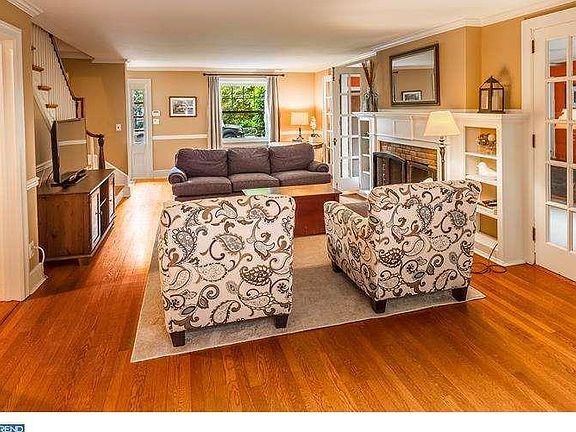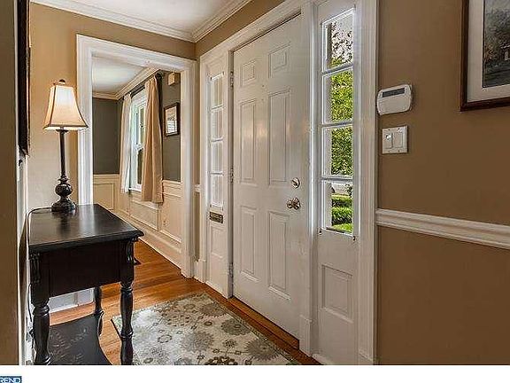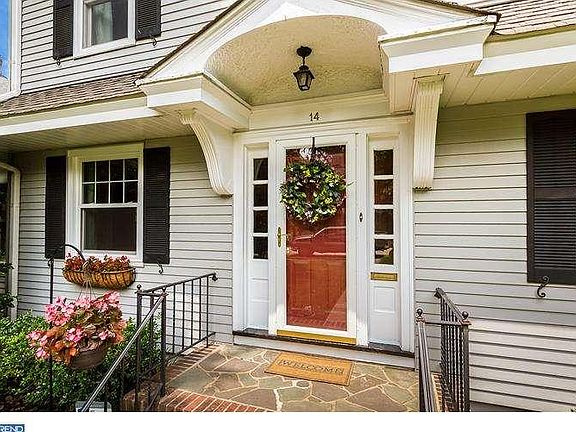 This charming historic home nestled on its quiet street has been thoughtfully updated by the current owners. Located just outside of downtown Moorestown, this quiet cul-de-sac features beautiful architecture and a very peaceful neighborhood. The homeowners had the kitchen renovated recently and added a new backsplash, granite countertops, and new paint throughout the home. For added convenience, a back porch was converted into a mudroom/breakfast area complete with coat closet and custom built-in bench/storage/cabinety. The home has recently refinished oak hardwood flooring on the first floor, and refinished original pine flooring on the second floor. The original side porch has been enclosed and now can be used as office space, playroom, or whatever your needs may be. A small alley runs behind the home with access to the detached 2 car garage. The family room, featuring brick fireplace and built-in cabinetry is the main feature of the first floor and has beautiful chair rail and crown moulding. Four nicely sized bedrooms on the second floor, with a dedicated master bath and a hall bath, round out the home.