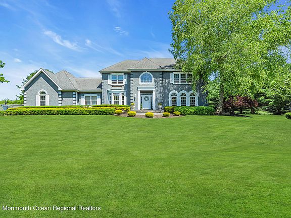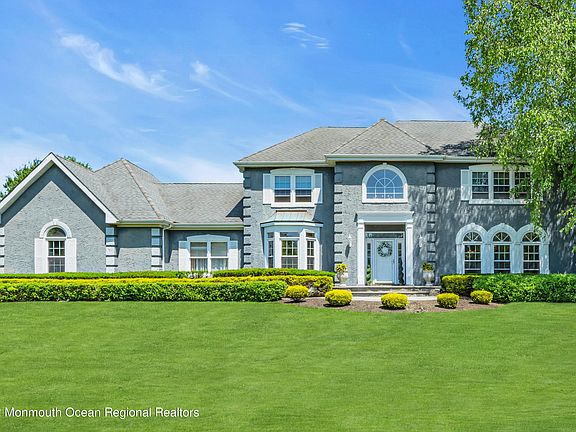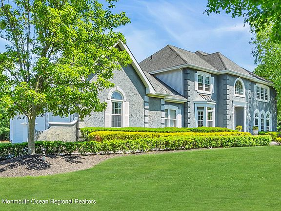 Welcome home to this stunning colonial in the desirable Millstone Twp! Featuring 4 bedrooms and 3 full bathrooms including the master - this home is move in ready! Step in to the gorgeous foyer and you're greeted by hardwood floors and decorative molding the flows throughout the entire home. The foyer features 2 closets and a wall mirror. To the right sits the huge formal dining room and to the left is the formal living room both dripping in dec molding. Through the formal living area find an addition seating area that hosts a lovely decorative fireplace. Go into the GORGEOUS eat in gourmet kitchen that hosts a massive granite center island/break fast bar, custom cabinetry and a two sided fridge. The open concept flows into the seating area that hosts high ceilings with huge wind ws that bring in all the natural sunlight & on each side find sliding doors that lead to the wraparound deck. To the right of the kitchen sits the cozy living room that is perfect for relaxing all year round. To the left find built in shelving all along the wall that can be used as pantry giving you plenty of storage space! There also sits a full bathroom and a laundry area with direct access to the outdoors. Upstairs find more decorative molding flowing through the hall way into the beautiful master bedroom. The master hosts laminate floors with custom vaulted ceilings and 2 walk in closets. In the master bath find a huge tub as well as a shower stall, double sinks and additional closet space! Down in the full finished open basement, find the perfect place for entertaining! Outside find your own personal oasis - go past the deck onto the lovely patio area and then through the fence into the beautiful pool area perfect for all summer months! Stunning throughout!