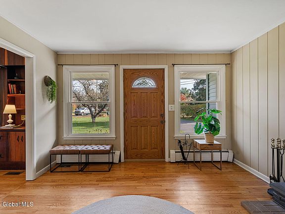 Updated ranch home located at the end of a quiet cul-de-sac in a desirable Kinderhook neighborhood, walking distance to quaint village shops & restaurants. Enjoy a recently updated bright kitchen and dining area, a charming living room with built-in shelves and a cozy hearth room with a woodstove insert that can heat the whole house. An additional family room/flex space is perfect for entertaining, gym, or work-from-home. The lovely, private yard has a newly installed low maintenance concrete patio as well as an established vegetable garden area. Enjoy hardwood floors, fresh paint, & peace of mind with a new roof & gutters (2021), new central air (2022), & new windows & storm door (2024). Move right in and enjoy!