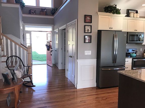 3.5-year young custom built bungalow with gorgeous meadow views and two-story entryway! Extensive millwork, dream kitchen with oversize island, cathedral ceiling in great room, first floor master with soak tub and separate 50" tiled shower, and hardwoods throughout the entire first floor. The second floor boasts 3 ample bedrooms, all with oversize walk-in closets, and a full bath. The walk-out basement opens up to the patio, lots of natural light and sliders make this bonus space a great work out area or future man-cave!