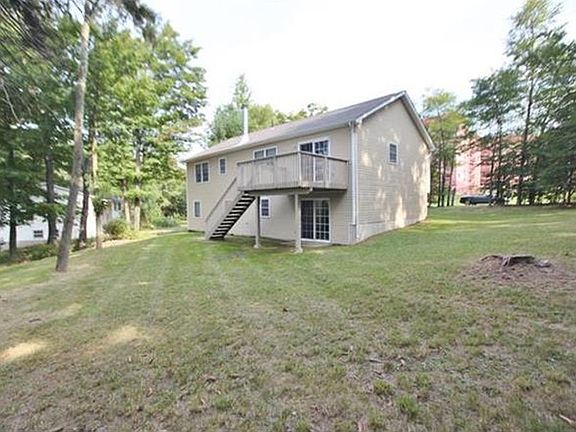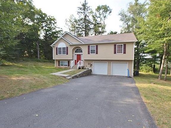 Ready for move-in! A Beautiful, open floor plan, contemporary home with high ceilings and over 2100 sq. ft. Just a perfect size! Cherry stained cabinetry, a center island, and plenty of natural light in the kitchen. There is wood burning fireplace in the living room and a nice sized deck just off the kitchen. The formal dining room is surprisingly different, with half of the wall overlooking the entryway opened up. The dining room, living room, hallway, and kitchen all have shiny hardwood flooring. The Master bedroom has a walk-in closet, a jetted tub in an attached private bathroom, and will comfortably accommodate a king sized bed. Downstairs is the 4th bedroom, family room with sliders leading outside, a full bathroom with a stand-in shower, and the laundry area. You'll be able to Protect your vehicles from the elements with the Over-sized 2 car garage with electronic openers. The property is surrounded by mature trees and partial Mountain View's.