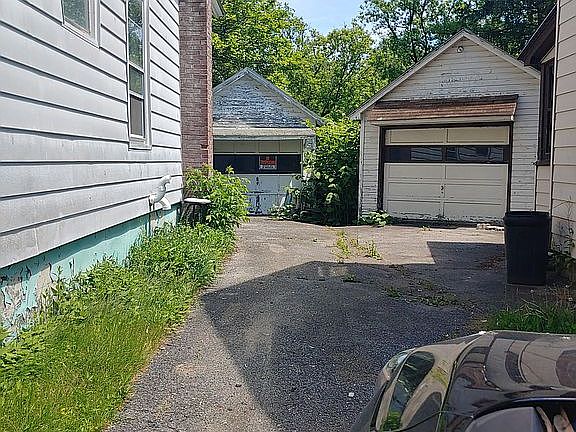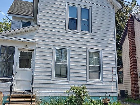 Will need new roof in the next few years. No leaks at this time, though. Furnace was replaced about 7 years ago. 2 porches. 2 bedrooms with additional room that could be used as a kids room. Shared driveway with detached garage. Unfinished basement, does get wet but no standing water. Basement probably just needs to be resealed. Detached garage with shared driveway. You can park 1 car in front of garage and still have room for neighbor to get out. 1 additional parking spot on the other side of house. INSIDE PICS COMING SOON! PLEASE CALL OR TEXT ME AT 518-705-6350 AND LEAVE A MESSAGE IF INTERESTED. THANK YOU!