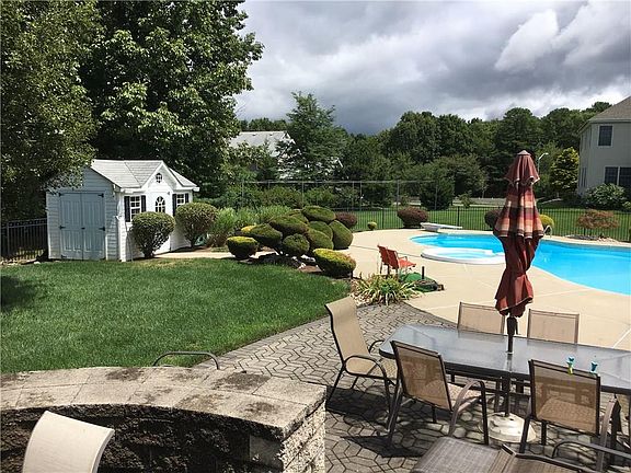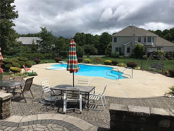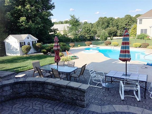 Enjoy Amazing Backyard Oasis. Multi Level Paver Patio Areas and Sitting Walls. Beautiful Heated Inground Pool, Hot Tub,Shed&Completely Fenced. Filter&Pool Heater REPLACED 2016. Ample property space beyond pool area. Driveway lined with Belgium Blocks and Prof Landscape. Spacious Open Floor Plan Interior features 2 Story Entry REPLACED Custom Glass Panel Custom Double Entry Door. Custom Tile&Exquisite Chandelier with Motorized Lift for Cleaning Ease&Decorative Wall Mouldings. Main Level Eat in Kt with Ample Seating and Breakfast Bar, Maple Cabinets, S/S Stove&Refrig. Family Room &L/R Boast Custom Stone Woodburning Fireplace(can be converted to gas) Formal D/R has wood floor. 5th Bedroom, 1/2 bath,& Laundry Room with Front Load Washer&Dryer. 2nd Level Master Bedroom Suite Double Sink Vanity Soaking Tub&Shower&3 Additional Bedrooms with ceiling Fans Additional Amenities Partial Fin Basement with Wet Bar, 2 Zone Heat and A/C, Full Security System with 2 keypads