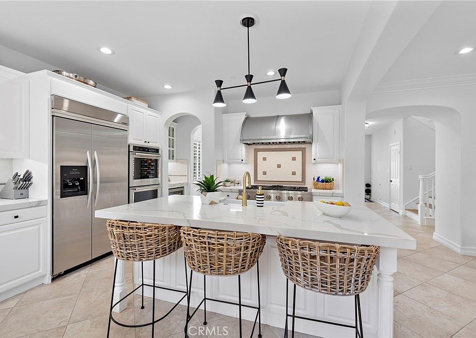 Meticulous remodel in the esteemed gate-guarded community of Catania, this exceptional residence invites you to experience a blend of modern comfort and coastal charm in the heart of Talega. Located on a Cul a sac with close to 3000 square feet of thoughtfully designed living space this home features five generously sized bedrooms and four full baths. This versatile home offers single level living with a downstairs master suite, upgraded counter tops, sinks, faucets and decorative tile plus an additional downstairs home office. The second floor provides three additional bedrooms including a second primary ensuite and beautiful built-ins throughout. This beautifully designed home boasts a gourmet kitchen with Calcutta quartz countertops, apron sink, newer Dacor cook top, double ovens and beverage cooler. The home has a modern feel with a mix of newer LVP flooring and tile. There is zero carpeting in this home! The gas fireplace in the living room boasts updated custom tile, lime washed stone and a custom-made, reclaimed wood mantle. All overhead lighting, including chandeliers and recessed lights, have been recently updated. The entire house, both interior and exterior, were professionally painted. Both the front and back yards have been professionally landscaped including ambient outdoor lighting. With its contemporary design, flexible floor plan and over-sized backyard, you are provided with a tranquil escape within the comforts of your own home throughout. The neighborhood includes award winning Vista Del Mar K-8 grade school, Talega Swim and Athletic Club, pools, hiking trails, Vista Hermosa Sports park, and conveniently located near Fred Couples signature golf course and restaurants. Enjoy shopping at the outlets or in historic downtown San Clemente. Close to beaches and pier.
