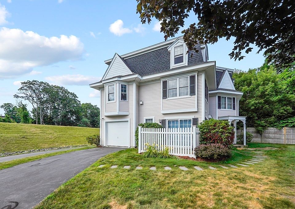 Tucked away at the end of a long private drive on a cul-de-sac, this 3-bed, 2.5-bath townhome offers three levels of comfortable living. Though the setting feels secluded, you're just minutes from the Mass Pike, Route 30, and the commuter rail. Follow a stone path to the tiled foyer/mudroom, which opens to a cozy, carpeted 1st floor bedroom with ensuite bath—perfect for guests, a home office, or den—plus laundry hookups and access to the 1-car garage. The main level features an open-concept layout with hardwood floors, a quartz kitchen island, stainless appliances including a gas stove, and sliders to a back deck with beautiful views. The living room with fireplace flows into the dining area—ideal for entertaining. Upstairs, the primary bedroom includes a walk-in closet, with two more bedrooms and a full bath completing the level. Central A/C, ample parking, and a prime location near Lake Cochituate, the Rail Trail, dining, and shopping. Schedule your showing today!