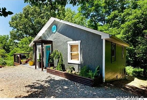 Surprisingly spacious home. Charming exterior, new deck, nicely landscaped in front with space for garden or play in the large back yard. Vaulted ceiling and open floor plan. 2 large bedrooms. Cute kitchen with breakfast bar. Built-in storage area in basement. Detached storage building with electricity. Convenient to UNCA, downtown, River-Arts district, and the new Woodfin water park. Walk to yoga! This property is zoned for residential and light commercial use. Lots of upgrades! Priced to sell!