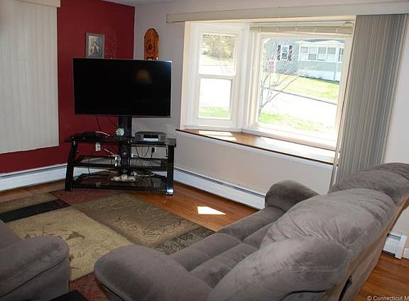 This six room cape has so much offer! It has three bedrooms with a possible fourth bedroom on the main floor, two full baths (one on each floor), natural oak flooring throughout, and a large eat-in kitchen (all appliances are included) with plenty of cabinet storage, a tiled backsplash, and coordinating tile flooring. There are two bedrooms on the top floor with a convenient full bath dividing the two in the upper hall area. The washer & dryer are located in the basement next to a newer Burnham oil burner and hot water heater. The basement is waiting for the new owner to make it into something special. There's an unfinished room on one side with a bar and a set of double doors that open to the outside on the other side, and 200 AMP electrical service has been installed! The back yard has two levels and is completely outlined by stone walls and vinyl fencing, including a large stone fire pit.