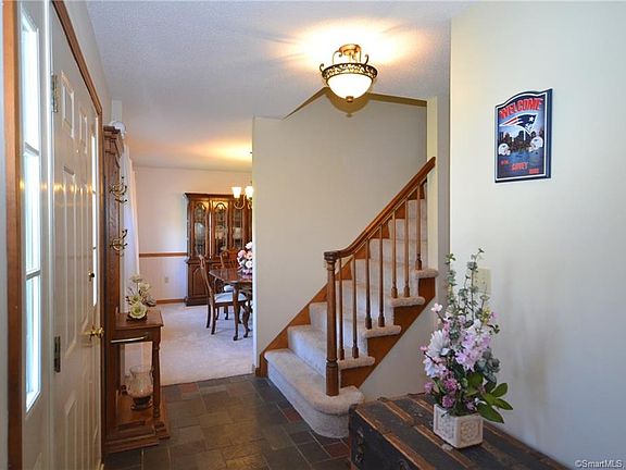 Not your typical Colonial, this meticulously maintained colonial is located in convenient East Lyme neighborhood near schools and shopping. Slate entry foyer open to gracious formal living and dining rooms each with glass pocket doors to adjoining rooms. Continue to the kitchen with huge center island, commercial sink, updated appliances and convection microwave - open to the spectacular 23x23 Great room that is the heart of this home with masonry fireplace, two sets of atrium doors to deck and pool area - ideal for entertaining or more intimate gatherings. Laundry room with door to yard and pool area, Full bath and first floor bedroom (currently used as office complete the main floor. Upstairs find an ample master bedroom suite with full bath, two walk in closets and private deck. Two additional large bedrooms, all with generous closets and full bath with hydro tub are found on the upper level. The yard is fully fenced with privacy fencing around pool and hot tub area with pergola covered deck. The lower level has a heated playroom and a workshop with stairs up to oversized garage. This is a must see