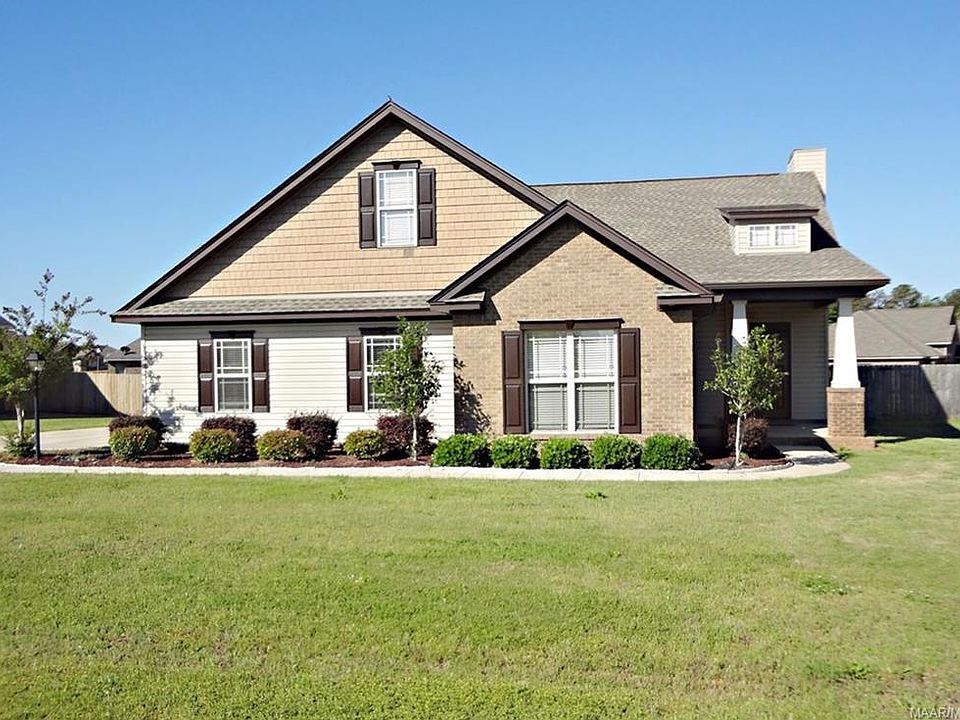 Look at this one quick... will not last long. Freshly painted and new carpet. Brand new appliance package including side by side refrigerator. Full privacy fence!! Over 1/2 acre corner lot fully sodded and 2718sf under roof. You have to see the detail in this one. Built for a model, this home has true craftsman style molding (even in the hallway). Craftsman fiberglass front door and craftsman permacast columns. Unique floor plan. Only one built. Greatroom has built in columns and fireplace with tiled raised wood hearth. Two raised bars in gourmet kitchen with gas cooking and center accent island with built in bookshelves and spice cabinet. Large corner pantry and tons of cabinets. Master bath has jetted tub in tiled deck, two vanities and designer shower. Huge dining space with recessed place for china cabinet. Look at the unique craftsman interior doors. Rear porch is screened in and overlooks large backyard and deck. All bedrooms are large and one has special ceiling. Home complete with blinds and ready to move in. Carpeting only in bedrooms. Lots of closet space. You will not find these features in any home priced like this one! Oversized garage with new opener.