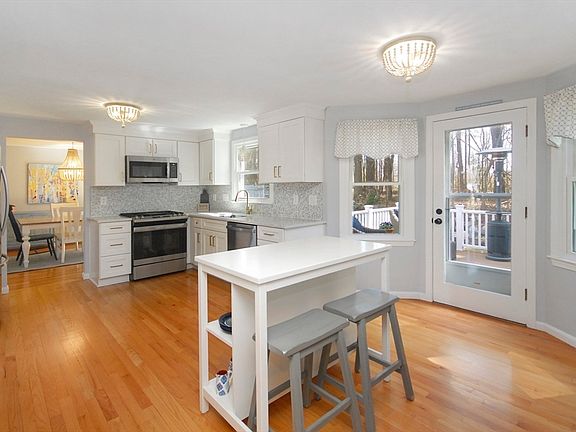 This home's interior has been totally transformed within the past three years with the ultimate in taste & is STUNNING! Fresh paint throughout its interior is breathtaking! The kitchen has been beautifully updated with white cabinets, quartz counters, new stainless appliances, & hardwood flooring. The updated half bath is highlighted by new vanity & engineered hardwood flooring. The dining & living rooms have hardwood flooring; the dining room slider leads to the private back yard with trex~like decking that extends from the kitchen to the dining room. New carpet on the stairs & upper level leads to the primary bedroom suite with updated 3/4 bath accented by newly tiled shower & engineered flooring. Three additional good size bedrooms & the tastefully updated family bath complete this space. The lower-level Great room has also been beautifully updated! Newer vinyl siding, furnace, on demand water heater, prof landscape & partial fenced yard. Enjoy this beauty & all that Maynard offers