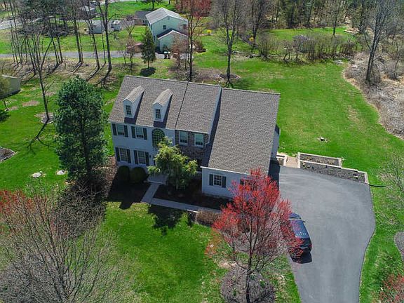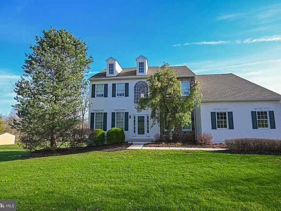 Welcome to this meticulously maintained 4 bedroom 2 1/2 bath home on almost 2 acres in the award-winning Souderton School District. This home offers great curb appeal with mature trees and a large lot. The home offers a GAF roof, Anderson double hung windows, well pump and deck all replaced in the last few years. There are 9 foot ceilings on both the main and the 2nd floor. Entering into the spacious two story foyer, to your right is an elegant office with french doors. To your left is the formal living room which leads into the formal dining room creating a great flow. Both the foyer and dining room lead to the large gourmet kitchen with corian counters. The kitchen opens to the breakfast room and family room creating a great open floor plan ideal for entertaining. From the breakfast room there are doors out to the expansive deck overlooking an enormous, private yard. The main floor laundry and a powder room complete the first floor. There is extensive crown molding and chair rail as well as upgraded window casements throughout. Upstairs, is a serene master suite with cathedral ceiling, walk-in closet and lovely master bathroom. 3 additional large bedrooms and a hall bath complete the second floor. The walk-out daylight basement is beautifully finished with a kitchenette and ample light making it an inviting additional living space! This home has been lovingly updated and includes an exterior hookup for a generator, a level yard that has a perfect spot to set up your winter ice rink, a shed and plenty of privacy in a cul-de-sac location.