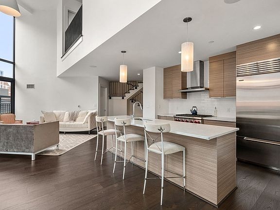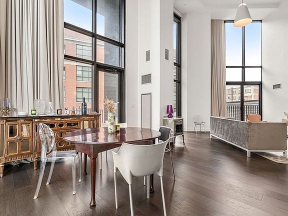 Stunning 4 bedroom duplex loft in full-service South Boston building. Newly constructed, 14 W. Broadway is a concierge building featuring grand porte-cochere entryway w/ valet parking, fitness center & one of the largest roofdecks in Boston. This duplex has a gracious foyer that leads to an open / living dining room w/ approx. 20' ceilings, double-height windows & private balcony. Kitchen features Quartzite counters, Sub Zero & Wolf appliances & large island w/ wine fridge. Adjacent family room w/ full bath makes the living level a seamless entertaining space. Upstairs, the bedroom level has a large primary bedroom w/ walk-in closet & ensuite bath w/ marble tile & glass shower. 2 guest bedrooms share a large bathroom. Plenty of closet space, custom window treatments, dark wood floors, Sonos audio & laundry room. Steps to restaurants, shops, coffee, hotel & Broadway T Station. Easily accessible to Seaport, South End, Financial District & major transporation.