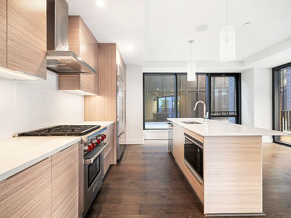 This spectacular 2 bedroom 2 full bath unit is a showstopper! The open concept kitchen features Wolf and Sub-Zero stainless steel appliances and gas cooking. The expansive living room with floor to ceiling windows opens up to a private balcony, making it perfect for entertaining. The primary bedroom has a walk-in closet with gorgeous en-suite bathroom. The generous guest bedroom provides ample closet space and natural light. There is in-unit laundry as well as optional dry cleaning pickup/delivery. Enjoy the common roof deck with fireplaces and stunning city views, or take a class on one of the Peloton bikes in the sizable gym. This building is in an amazing location across from the redline, surrounded by restaurants, just across the bridge from the South End and easy access to 93 and the Mass Pike.