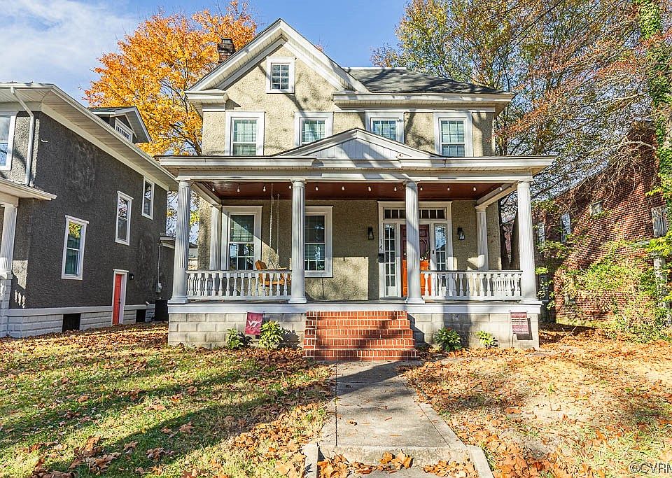 Welcome to 14 W Lancaster! An amazing 3 bed/2.5 bath renovated 1920 American Four Square in Brookland Park! Enjoy every modern amenity while soaking in the charming details of yesteryear! The house is covered with beautiful hardwood floors & crown molding. Enter the ornate foyer flanked by Doric columns that open to the dining room w/ fireplace. This spacious dining space opens to the family room thru gorgeous pocket doors! This room (w/new ceiling fan) baths in natural light from a huge bay window. Venture into the renovated kitchen noting the wine cooler & coffee bar to the right, tile backsplash & granite counters. Just off the kitchen is a renovated half bath w/new vanity & wainscotting. Continue to a heated/cooled sunroom that overlooks a massive two-tier deck, stone patio, & privacy fenced back yard. Head upstairs to see 2 comfortably sized guest/kids rooms & a hall bath with dual vanity. Finally, arrive in your oasis, the primary suite! The primary has 3 windows & soaks in natural light. Gorgeous WIC w/pocket doors & custom shelving to the right, dual vanity, glass door shower w/custom tile work and HEATED FLOORS!!! New roof 2022. Just steps from the park & restaurants!