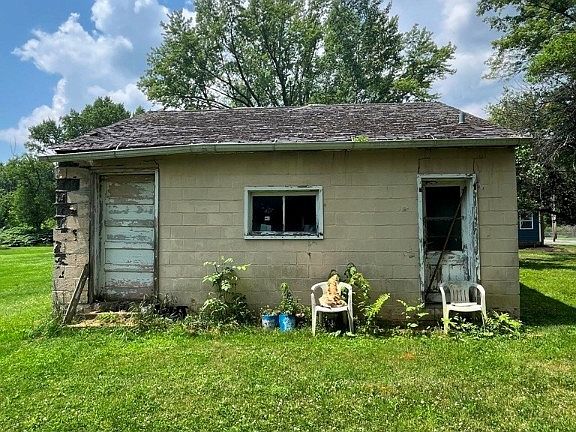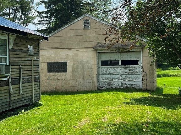 Cute and cozy 2 bedroom, 1 bath ranch in need of exterior work. Open living room/dining room, laundry room adjoining the kitchen, updated bath, all new windows, and metal roof. 24x24 Block garage needs removed or rehabbed. On a level triangle-shaped 1/3 acre lot.