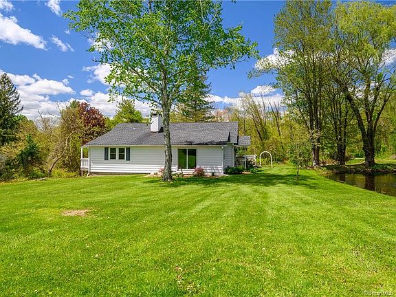 Charming ranch on scenic lot with NEW SEWER HOOKUP! This 1700 sf, 3 bedroom and 2 full bath home is sparkling and ready for its new owner! This beauty sits on an easy to care for acre and features a large sunny yard perfect for a huge garden and 2 decks for sitting and enjoying the views of the scenic pond. The charming interior includes a good sized kitchen, sunny dining/sitting room, living room with fireplace and propane insert, a light and bright den, 3 good sized bedrooms and 2 full, updated baths. The full basement includes the laundry, lots of storage and a separate workshop area. Some updates include new oil tank, new front door, slider and bedroom windows, roof 2011, boiler 2011, chimney refaced and new cap & flue 2011. Conveniently located just minutes to Exit 9 off I84, shopping, schools and beautiful open space for hiking. Enjoy boating on 2 local lakes or swimming at the Town Beach, golf, tennis, breweries and a fantastic flea market. There's something for everyone!