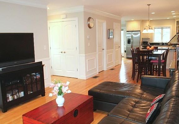 Spectacular sun splashed, pet friendly townhouse with open floor plan, hardwood throughout. Living room/dining room features crown molding, chair rails & wainscoting. Cooks enjoy open eat in kitchen with granite counters, wood cabinetry, stainless appliances, pantry closet. 1st floor is also home to a powder room and stack laundry closet. Rear door leads to rarely available spacious private fenced yard with raised garden beds and patio. Perfect for outside entertaining. 2nd level consists of two bedrooms with generous closets, full bath, linen closet and open office space with closet. 3rd level master suite will wow you. Walk in closet, corner gas fireplace, and spa like marble bath featuring jet tub, separate tile and glass shower and two separate vanities. Lower level is a 2 car tandem garage with direct access, energy efficient utilities and storage. Minutes to Cambridge and Somerville, and a Walk score of 85.... this address is Perfection.