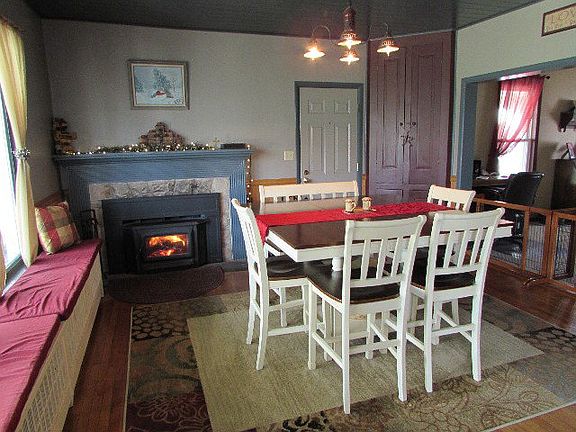 Charming old home with updated look and conveniences! Beautiful hardwood floors, open floor plan dining and kitchen area with a cozy stone firplace w/ wood burning insert. Family room w/ pellet stove, parlor and half bath on main floor. Four spacious bedrooms, two baths on second flr with hardwood floors. Walk up attic.Shady backyard with fence, fruit trees and small garden, plus two car detached garage. Enjoy the screened patio or the covered open-air porch on nice days in Big Valley! Call for you tour!
